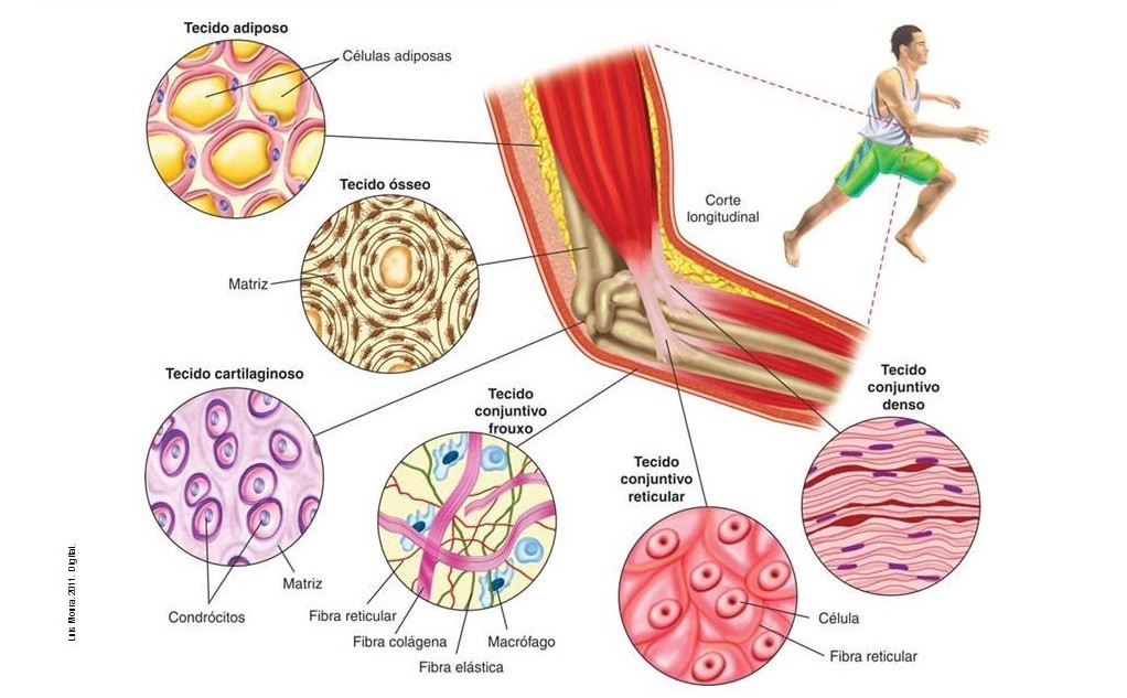 Há diversos tipos de tecidos conjuntivos, formados pelos componentes básicos já descritos (células, fibras e substância fundamental).