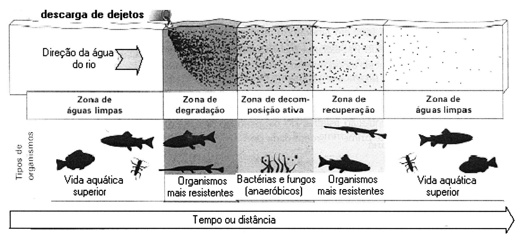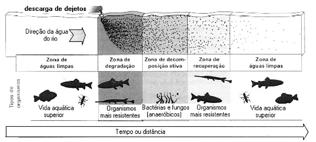 I. a vida aquática superior pode voltar a existir a partir de uma certa distância do ponto de lançamento dos dejetos;