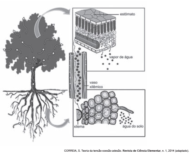 7 – (ENEM 2016) A figura ilustra o movimento da seiva xilêmica em uma planta.