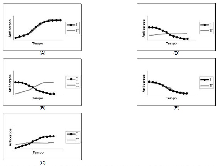1 – (ENEM 1999) A variação da quantidade de anticorpos específicos foi medida por meio de uma experiência controlada, em duas crianças durante um certo período de tempo. Para a imunização de cada uma das crianças foram utilizados dois procedimentos diferentes: