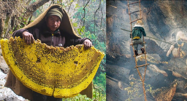 Os coletores desse mel especial são da população Kulung, que vivem no leste do Nepal, eles escalam os penhascos de até 91 metros, utilizando apenas escadas feitas de corda de bambu e usam uma vara com grama queimada na ponta, para que a fumaça afaste as temidas abelhas, ou seja, o trabalho de coleta do mel é muito perigoso.